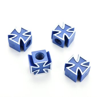 Amango Tire Air Valve Stem Valve Caps Blue Cross Car 4 Pcs (ราคาพิเศษสำหรับคุณ)